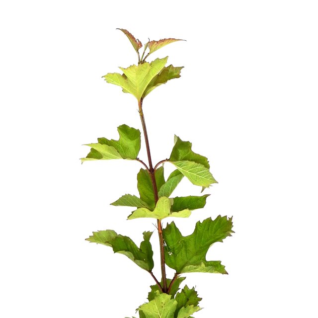 It is up to 4 m tall shrub with three- to five-inch petioled leaves with pointed, bluntly toothed lobes. The leaves are glabrous on the face, pinnate on the reverse, deciduous. Flowering from May to July, the inflorescences are abundant terminal panicles or panicles 5-8 cm across with white or pinkish, symmetrical, five-petalled flowers.